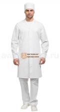 Халат мужской прямого силуэта с воротником пиджачного типа и центральной супатной застежкой на пуговицы.