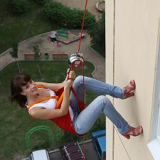При отсутствии возможности эвакуации людей через лестничные пролёты, используется спасательный спиральный рукав Самоспас. Спасательный рук...